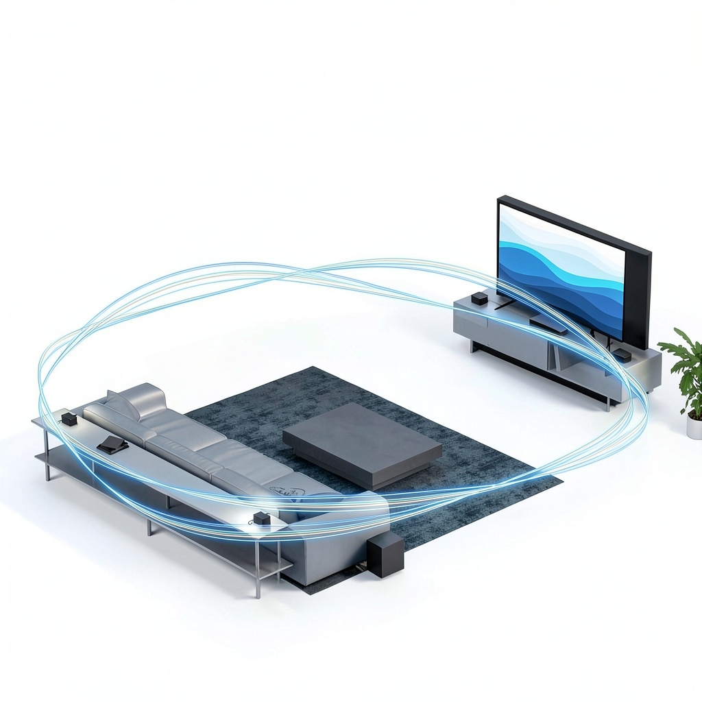 Dolby Atmos creates a three-dimensional audio environment by precisely reproducing high, mid, and low tones, allowing sounds to move around you for a more realistic and engaging experience.