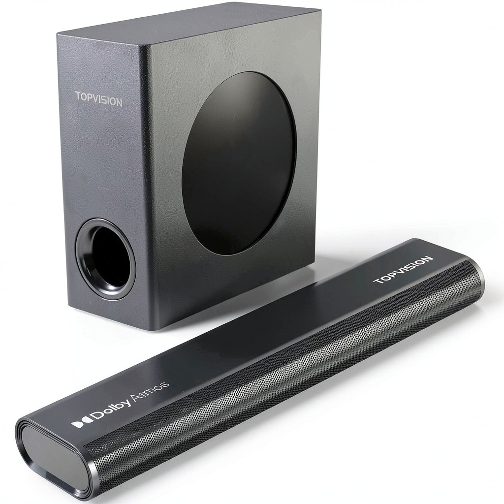 TOPVISION stands out with its commitment to quality and user-centric design. This soundbar combines Dolby Atmos technology with a dedicated subwoofer for authentic surround sound, outperforming many basic TV speakers. We focus on reliability and ease of use, offering seamless Bluetooth 5.3 connectivity that reduces lag and interference. Backed by rigorous testing, it ensures long-lasting performance and customer satisfaction, making it a smart choice for those upgrading their home audio without the high cost of premium systems.