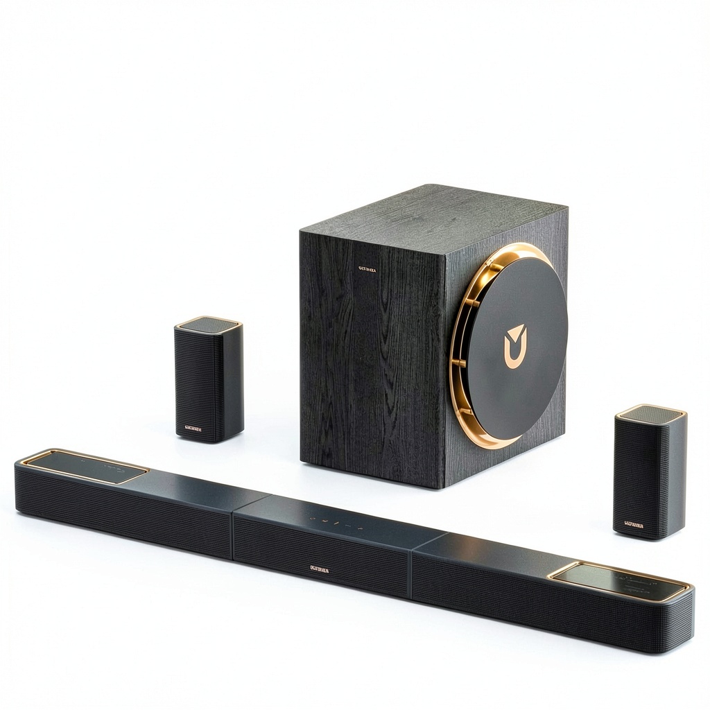 The Ultimea Skywave X50 is a 5.1.4ch sound bar system designed to bring professional-grade Dolby Atmos audio to your home. It features a wireless setup with dual 5GHz transmission for stable connectivity, minimizing interference and dropouts. The system includes an 8-inch subwoofer with Gravus Ultra-Linear Bass Technology, delivering clean, powerful bass down to 28Hz. Powered by an industry-leading GaN amplifier, it offers up to 98% efficiency and low heat, ensuring distortion-free sound even at high volumes. The NEURACORE multi-channel audio engine, with triple-core DSP and dual-core MCU, supports up to 17 channels for precise surround imaging and cinematic height realism, making it a top choice for immersive audio experiences.