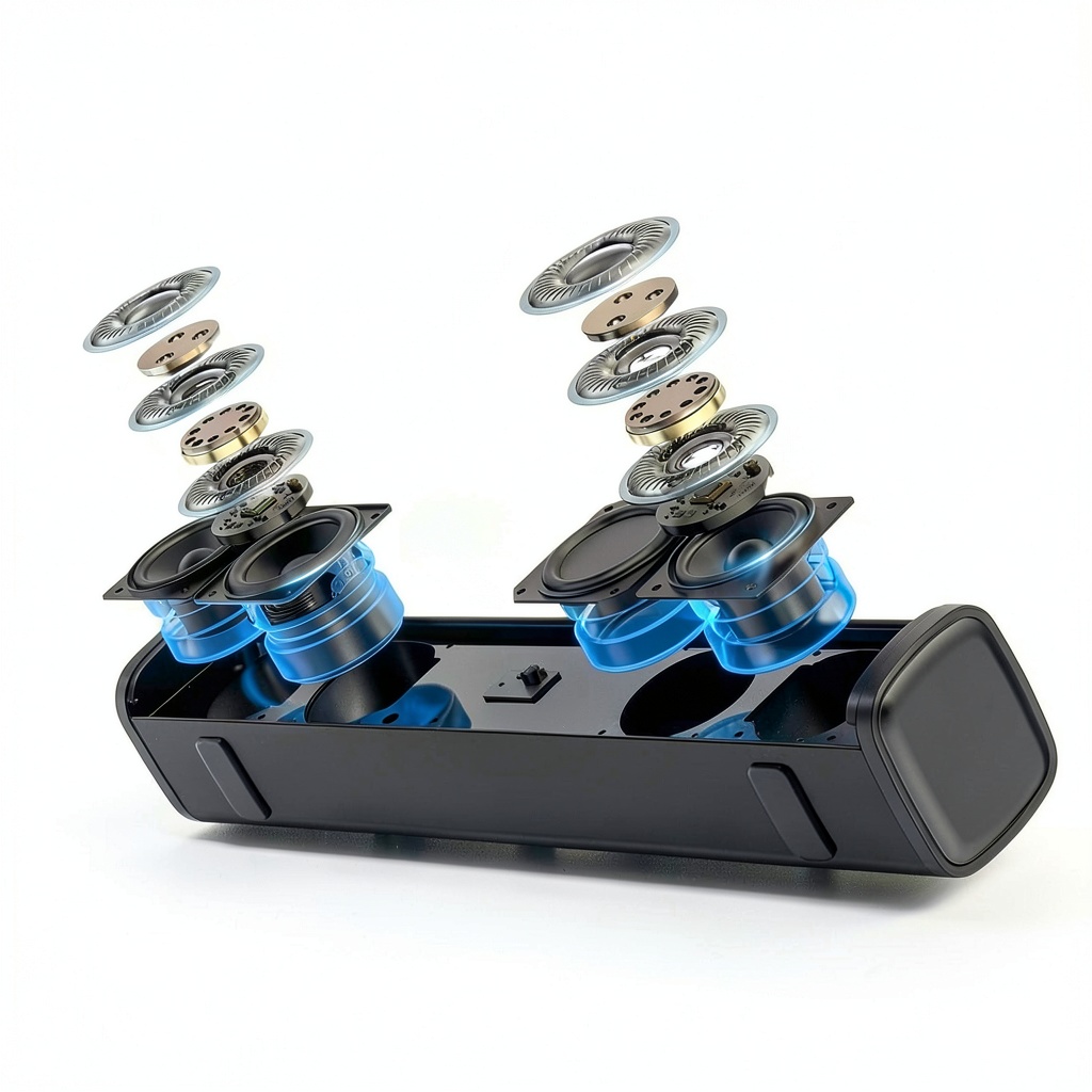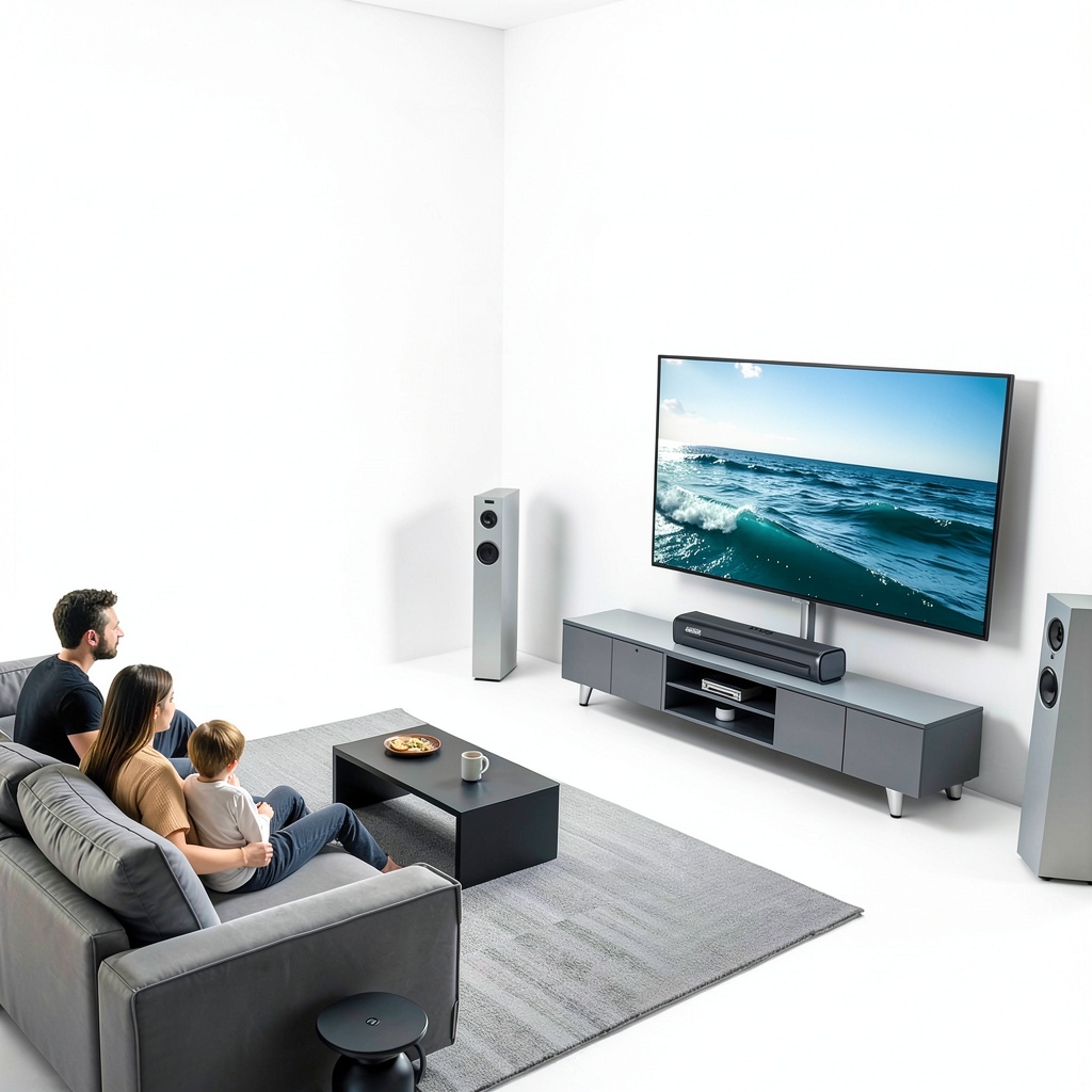 - Three EQ modes (Movies, Music, News) to optimize sound for different entertainment scenarios.