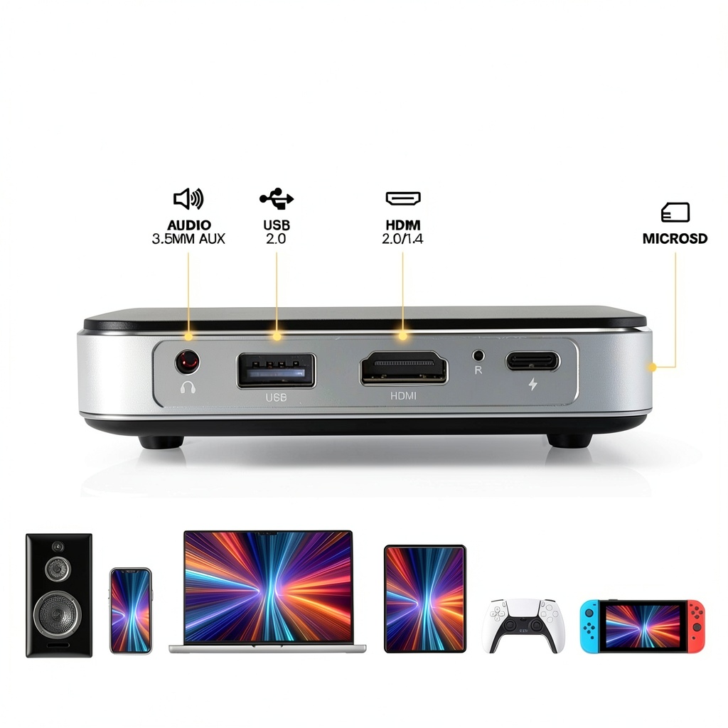 - Universal connectivity via HDMI, USB-A, microSD, and Wi-Fi with Miracast and AirPlay support