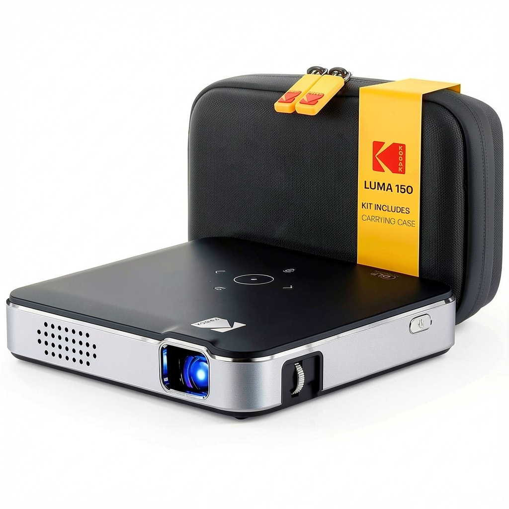 The Kodak Luma 150 Pico Projector is an ultra-mini, rechargeable projector designed for portability and versatility. Weighing just 7.5 ounces, it features an advanced DLP engine with 55 ANSI lumens and a native resolution of 640×360, delivering vivid images up to 100 inches. Constructed with durable materials, it includes a travel case for protection and supports connectivity via HDMI, USB-A, microSD, and Wi-Fi with Miracast and AirPlay compatibility. This projector is ideal for a wide range of applications, from business to leisure, ensuring high-quality projection in a compact form.