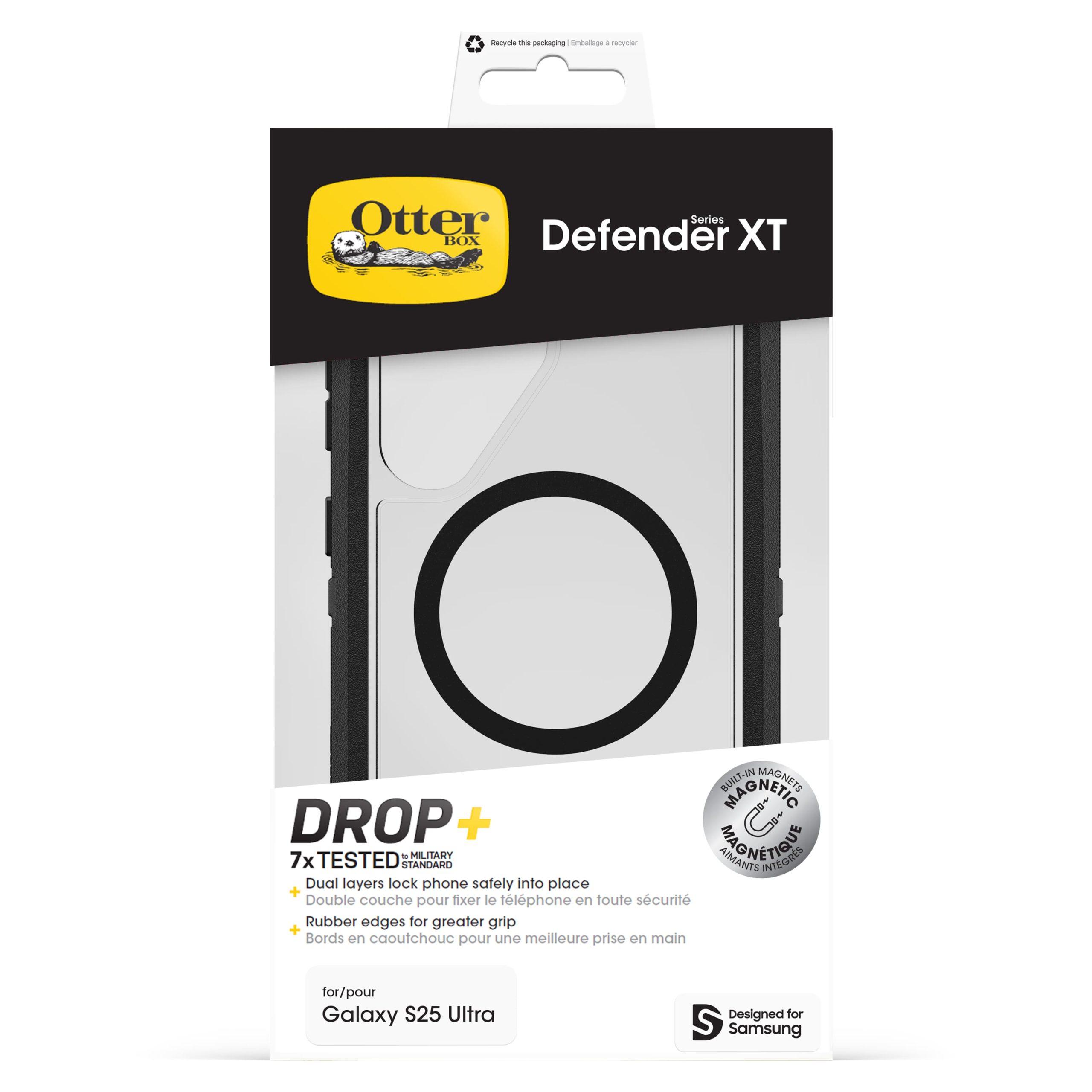 The Defender Series Pro XT Case with Magnets is engineered for the Samsung Galaxy S25 Ultra, delivering robust protection without bulk. This case features a dual-layer construction with a pressure-fitted frame that securely holds your device, while built-in magnets align perfectly for up to 15W wireless fast charging. It has undergone rigorous drop testing, exceeding military standards by 7 times, and includes port covers to block dust and dirt. The design incorporates grippable rubber edges for shock absorption and secure handling, along with bumpers around the camera and a screen lip to keep the display safe from surfaces. Model 77-97641 comes in color options like Dark Side, Denver Dusk, and Sagebrush Green, ensuring a precise fit and stylish look.