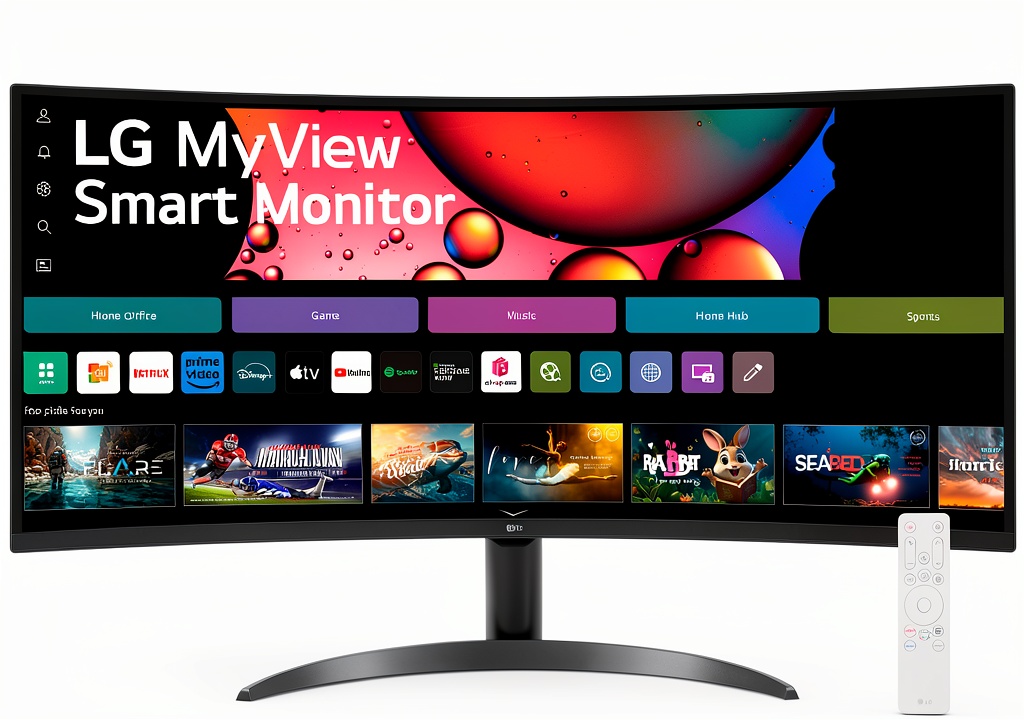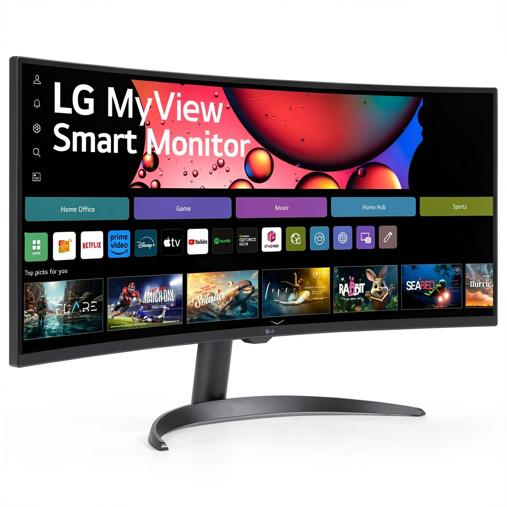 The LG 34-inch Smart Monitor features a 21:9 ultrawide QHD curved display with a 1800R curve, providing a 34% wider view than standard 16:9 screens. It includes built-in webOS for access to streaming apps like Netflix, Disney+, and over 300 free LG Channels, along with HDR10 support for rich color expression up to 99% sRGB. With versatile connectivity via HDMI and USB ports, and compatibility with cloud PC services, this monitor is designed for multitasking in work, gaming, and entertainment environments.
