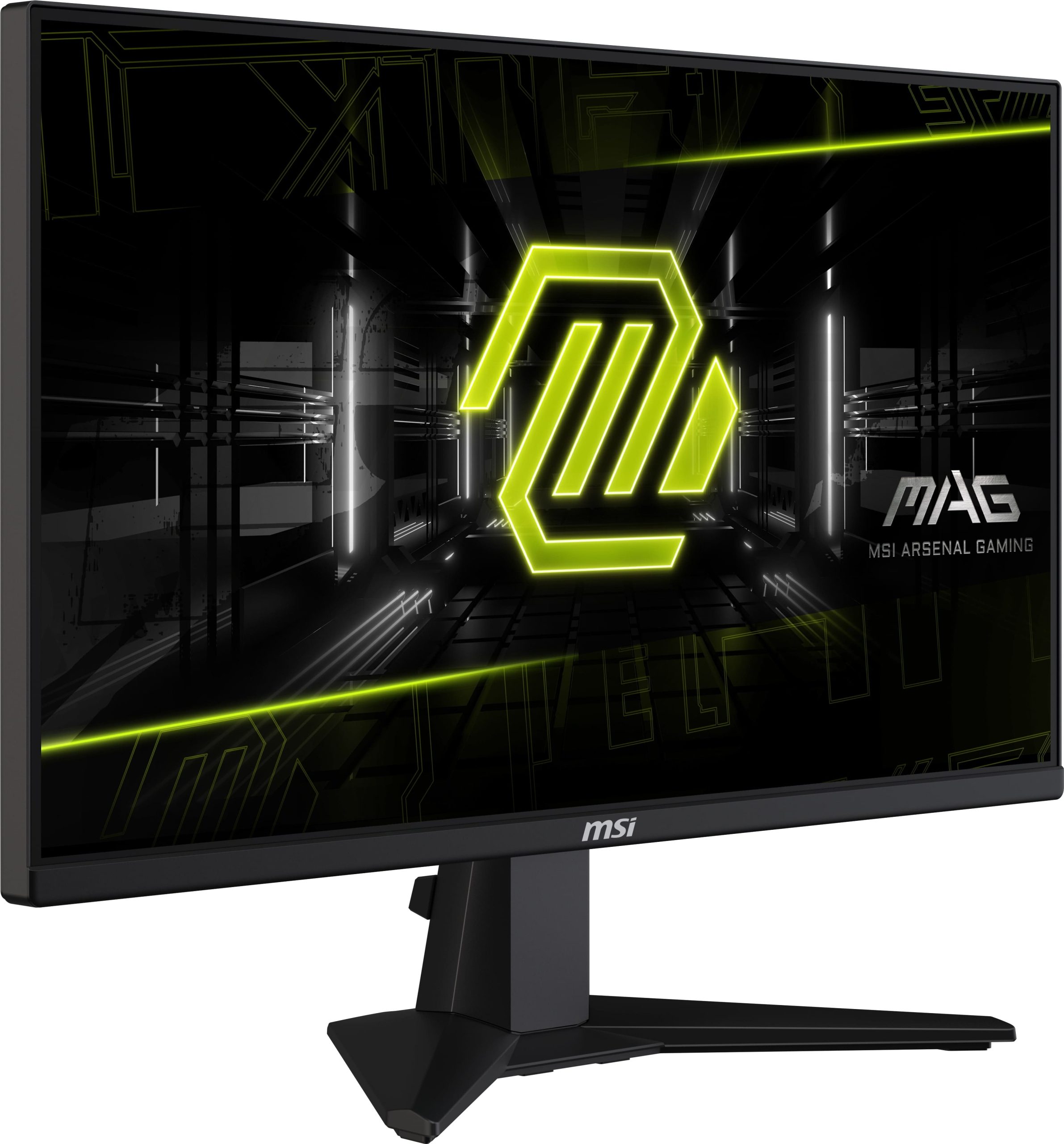 The MSI MAG 255XF is a 24-inch FHD gaming monitor engineered for high-performance gaming. It features a Rapid IPS panel that delivers vibrant colors and wide viewing angles, ensuring consistent image quality from any perspective. With a 300Hz refresh rate and 0.5ms response time, it minimizes motion blur and input lag, providing a competitive edge in fast-paced games. Adaptive sync technology eliminates screen tearing for smoother visuals, while the wide color gamut enhances color accuracy and depth. This monitor is designed with a metallic black finish and includes DisplayPort and HDMI inputs for versatile connectivity.