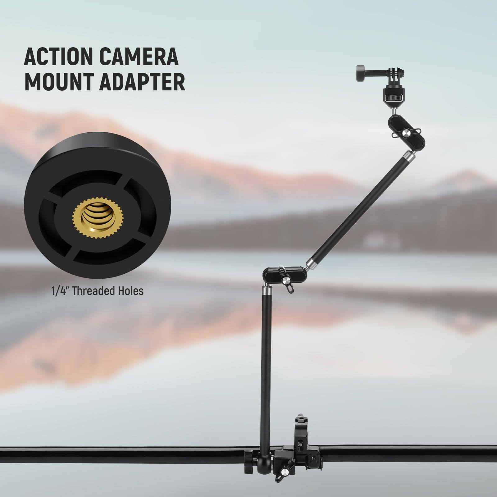 This magic arm is ideal for a wide range of applications, including overhead vlogging, gaming streams, video calls, and professional video recording. It serves as a low-profile boom arm for microphones, allowing clear audio capture without desk clutter. Content creators and influencers can use it for hands-free filming, enabling quick switches between vertical and horizontal shooting. The product is perfect for home studios, office setups, and on-location shoots where stable and adjustable mounting is essential. Its versatility makes it suitable for mounting DSLR cameras, action cameras like GoPro and DJI Action, and smartphones from brands such as iPhone, Samsung Galaxy, and Google Pixel.