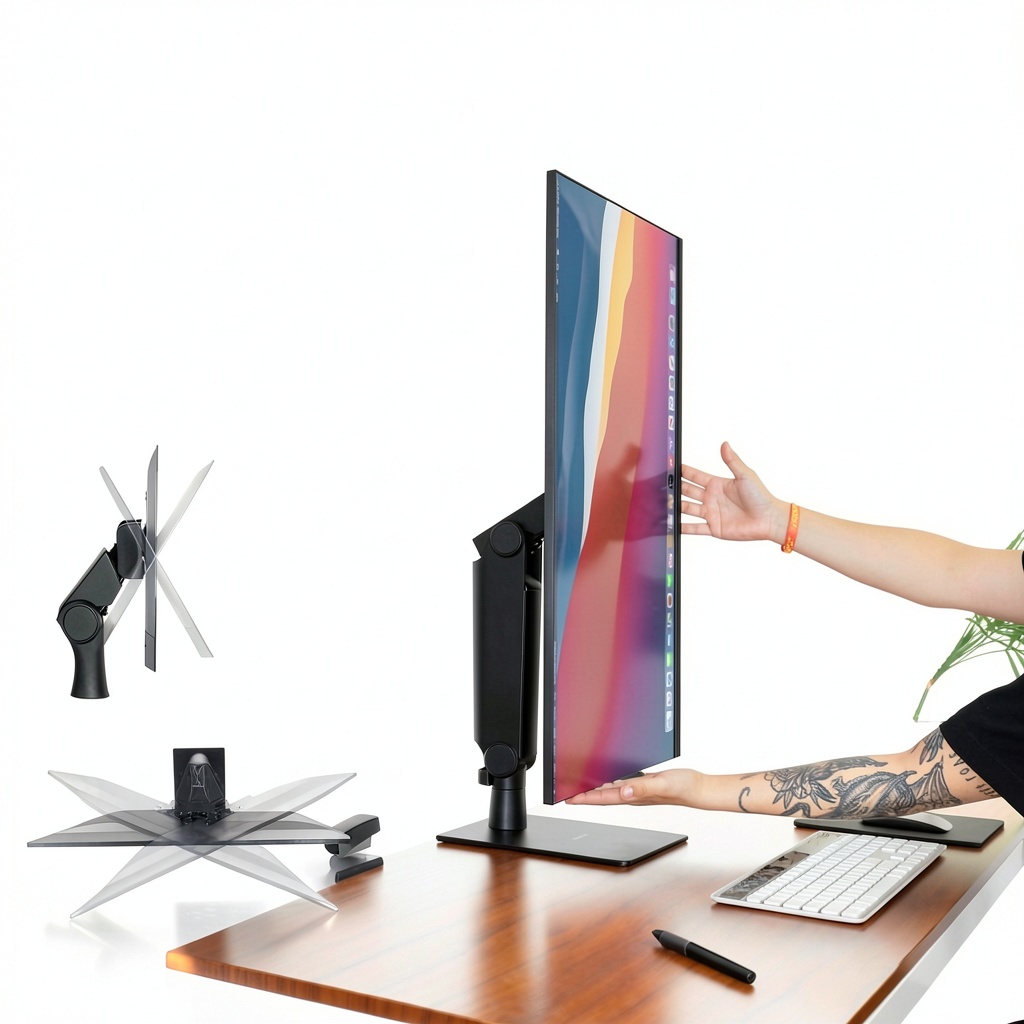 This monitor arm is perfect for home offices, corporate workstations, and creative studios where ergonomic comfort and space efficiency are priorities. Users can adjust the monitor height and angle to reduce neck and eye strain during long work sessions, making it suitable for professionals, gamers, and students. The freestanding design works on most desks without modifications, and the cable management system helps maintain an organized look in shared or personal workspaces.