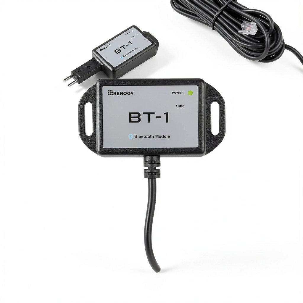 The BT-1 module is ideal for off-grid solar setups, including RV, marine, cabin, and home backup power systems. It targets DIY enthusiasts, renewable energy adopters, and professionals who require remote access to monitor battery levels, charging status, and system performance. Use it in environments where frequent physical checks are impractical, such as remote installations or weather-exposed locations, to maintain optimal solar efficiency and troubleshoot issues via the Renogy DC Home app.