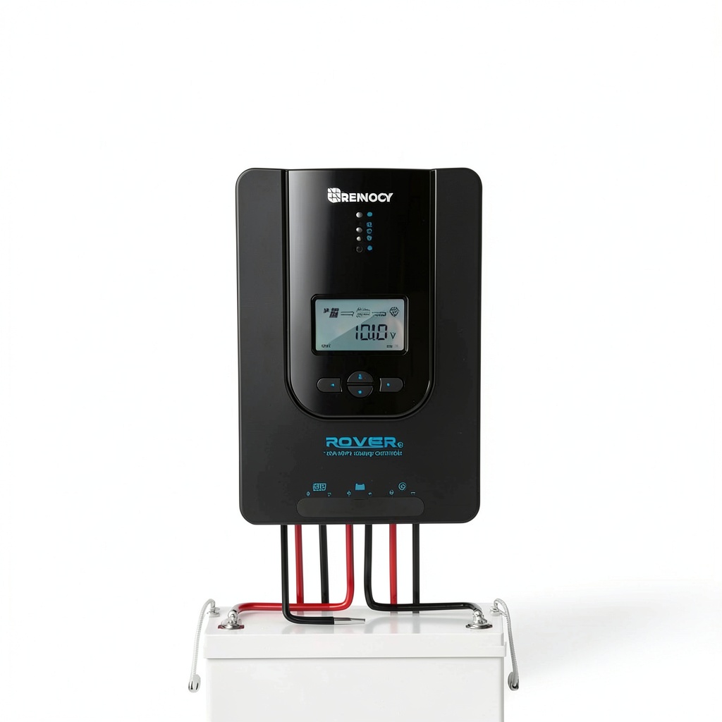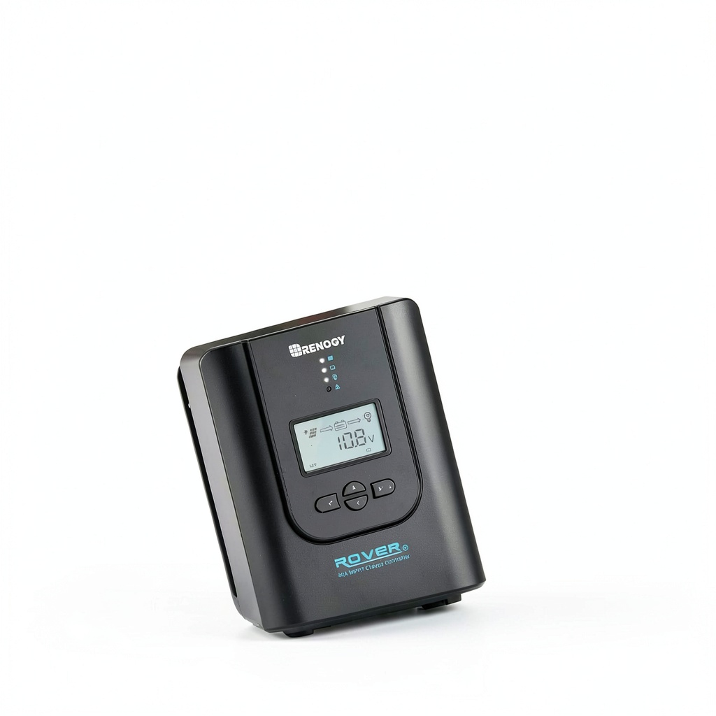 The Renogy Rover 40A MPPT Solar Charge Controller is engineered for superior solar energy management, featuring automatic voltage detection for 12V and 24V DC systems. It supports sealed lead-acid, GEL, flooded, and lithium batteries, with a customizable user mode for precise lithium battery parameter settings. The controller employs advanced Maximum Power Point Tracking (MPPT) technology to extract up to 30% more power from solar panels compared to PWM controllers. Constructed with a durable, insulated shell and UL certification, it ensures long-term reliability and safety in diverse environmental conditions. An integrated LCD screen and LED indicators provide clear system status, charging stages, and error codes for straightforward operation.